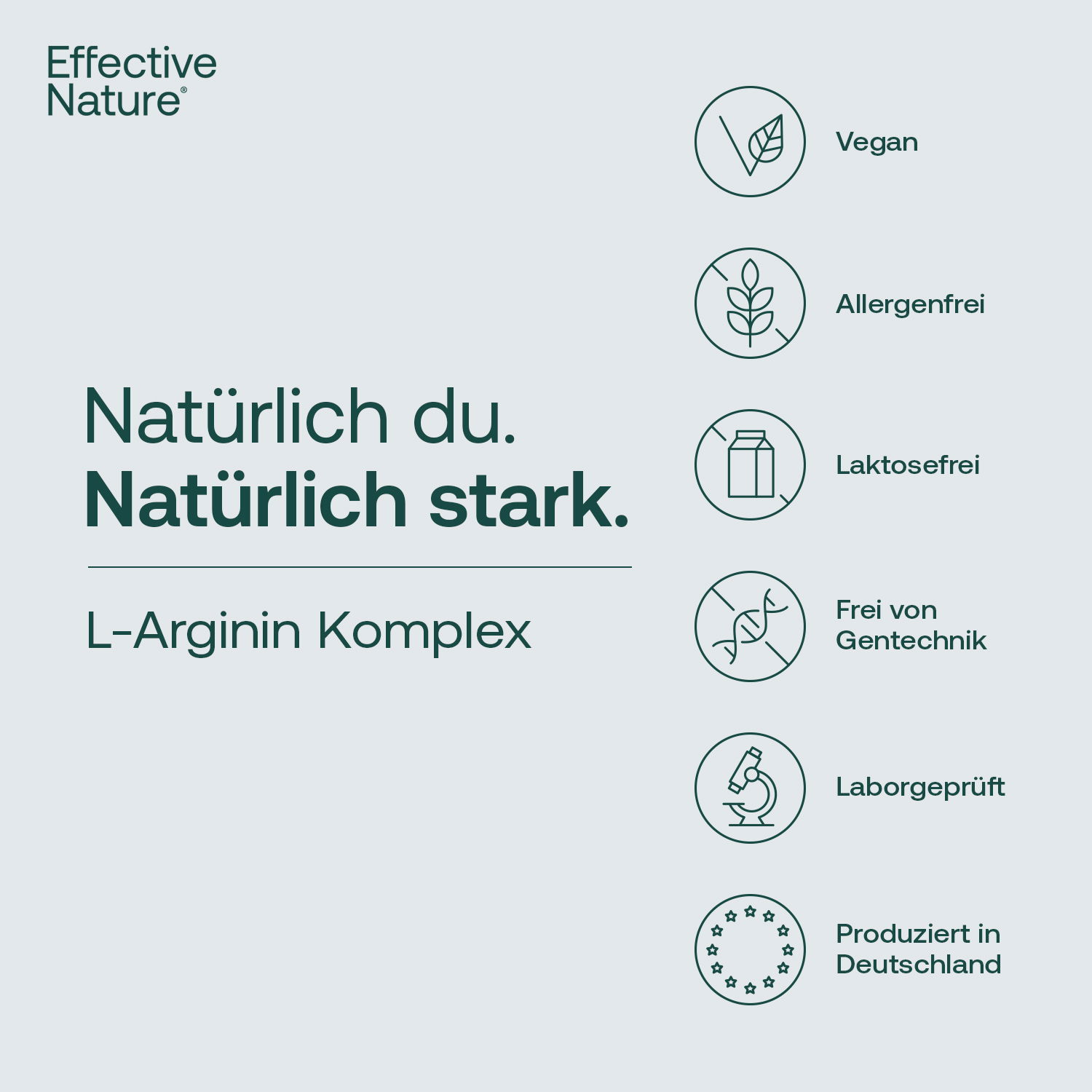 Mit den veganen L-Arginin Kapseln von effective nature halten Sie ein hochwertiges Produkt in den Händen. Die fermentative Herstellung unter kontrollierten Bedingungen lässt reines Arginin entstehen – ganz ohne Belastung durch Umweltgifte oder unerwünschte Zusatzstoffe. Neben L-Arginin finden sich in den Kapseln weitere wichtige Nährstoffe. Die angegebene Menge entspricht einer Tagesdosis:
