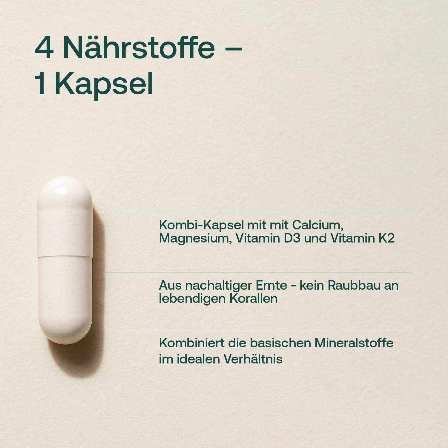Het goed is dat dit bedrijf niet alleen zeer hoogwaardige ingrediënten gebruikt, maar *deze* combinatie van D3, K2 en "Sango-Koralle" (Calcium und Magnesium im optimalen Verhältnis von 2:1) is ideaal; Deze ingrediënten apart van elkaar gebruiken is vrij zinloos: deze combinatie werkt synergetisch