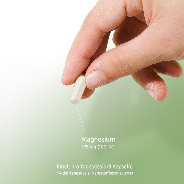 Bei nur 3 Kapseln am Tag deckst du deinen Bedarf an Magnesium zu 100% - 2 Monate am Stück!