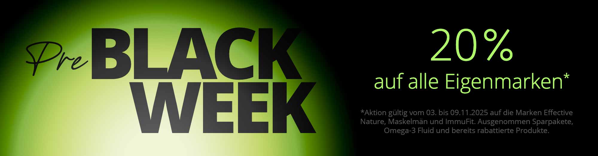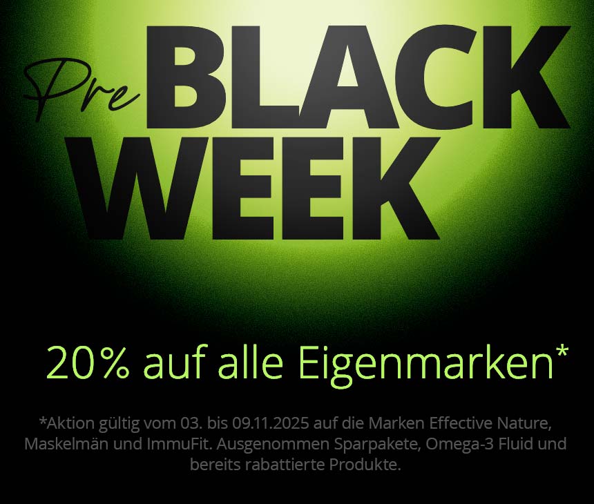 * Aktion gültig vom 03. bis 09.11.2025 auf die Marken Effective Nature, Maskelmän und ImmuFit. Ausgenommen Sparpakete, Omega-3-Fluid und bereits rabattierte Produkte.