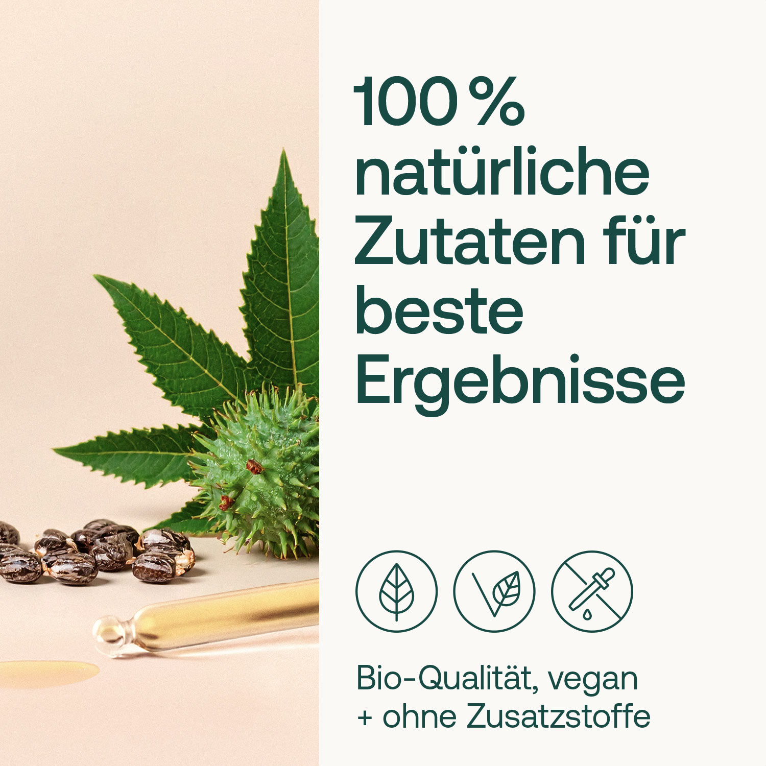 Rizinusöl gehört zu den traditionsreichsten Pflanzenölen in der Naturkosmetik. Das Bio-Rizinusöl von Effective Nature wird aus den Samen des Wunderbaums (Ricinus communis) gewonnen und kaltgepresst verarbeitet. So bleiben die charakteristischen Eigenschaften des Öls erhalten – allen voran sein hoher Gehalt an Ricinolsäure. Diese besondere Fettsäure verleiht Rizinusöl seine typische, leicht dickflüssige Konsistenz und sorgt dafür, dass es gut auf Haut und Haaren haftet. Das Öl legt sich wie ein schützender Film auf die Oberfläche, hilft, Feuchtigkeit in der Haut zu halten, und unterstützt so ein gepflegtes, geschmeidiges Haut- und Haargefühl – ganz ohne Zusatzstoffe. Dank seiner milden, gut verträglichen Eigenschaften eignet sich Bio-Rizinusöl für viele Anwendungsbereiche: von der Pflege trockener Haut über spröde Haarspitzen bis hin zur gezielten Anwendung an Nägeln, Wimpern und im Bart. Die Pipette ermöglicht eine präzise, sparsame Dosierung – genau dort, wo Pflege gebraucht wird.