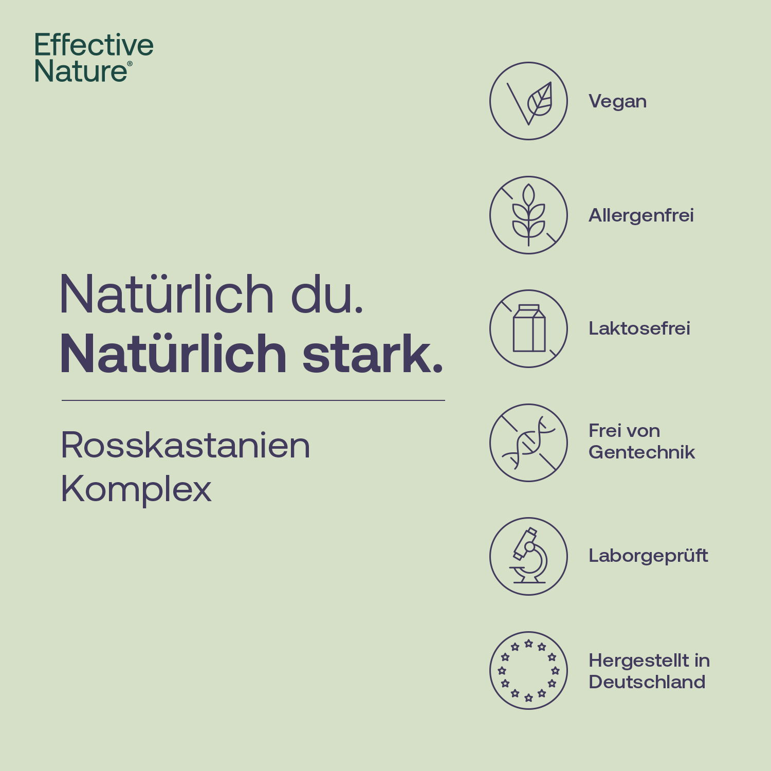 Für den Rosskastanien-Komplex setzen wir auf präzise Standards, damit jeder Bestandteil genau das liefert, was ihn ausmacht: Rosskastanienextrakt für Aescin, Traubenkerneextrakt für OPC, Buchweizenextrakt für Rutin – so erhalten wir einen sauber komponierten Pflanzenkomplex, der es wahrlich in sich hat.